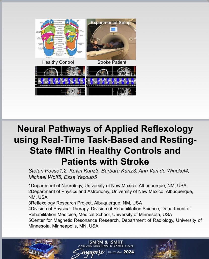 Τον Απρίλιο του 2024, ο Kevin και η Barbara Kunz, Dr. Stefan Posse της Ιατρικής Σχολής του Πανεπιστημίου του Νέου Μεξικού όπως και οι Dr. Essa Yacoub, Dr. Ann van de Winckel και Dr. Luca του Πανεπιστημίου της Μινεσότα, διεξήγαγαν έρευνα ώστε να μελετήσουν την επίδραση της Ρεφλεξολογίας στον εγκέφαλο κατά την διάρκεια μαγνητικής τομογραφίας MRI Scan, σε υγιείς ανθρώπους και ανθρώπους μετά από εγκεφαλικό.